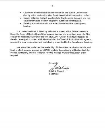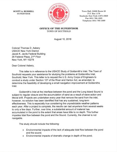 October 22 2018 Town of Southold requests Army Corp of Engineers assistance in studying problems at Goldsmith Inlet *See attached letter from Southold Town Uncategorized Click here for letter About "Darci Bielenda"